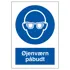 Påbudsskilt med dansk tekst "Øjenværn påbudt" leveres på plast i størrelsen (A6) 148 x 105 mm. med symbol og tekst.