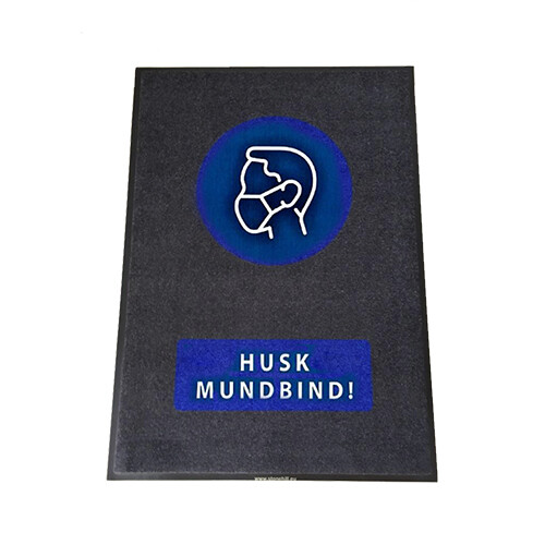 En praktisk entrémåtte, der er yderst slidstærk og smuds-absorberende. Den sender samtidigt et ansvarligt budskab og tydeligt signal. Måtten kan også fås med andre budskaber; "Husk håndspritten!", Host og nys i ærmet!" samt "Vask hænder!". Materiale: Slidstærke 100% HTN nylon/polyamid-fibre. Absorberingsevne: 3-4 liter per m2. Smudsabsorberingsevnen er cirka 600 gram per m2. Farveægte. Vægt: 2,5 kilo per m2. Mål: 90 x 150 cm. Tykkelse: 9 mm. Vaskbar ved 40 ⁰C, kan spules og støvsuges.