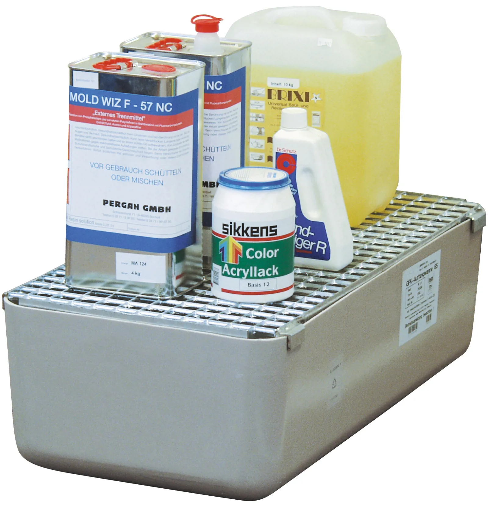 Er ideelle til opbevaring af miljøfarlige produkter. Den termohærdede plast sammenholdt med glasfiberforstærkningen resulterer i fordelagtige brandegenskaber samt høj kemisk modstandsdygtighed. Kapacitet: 65 liter. Mål: L 82 x B 42 x H 24 cm.