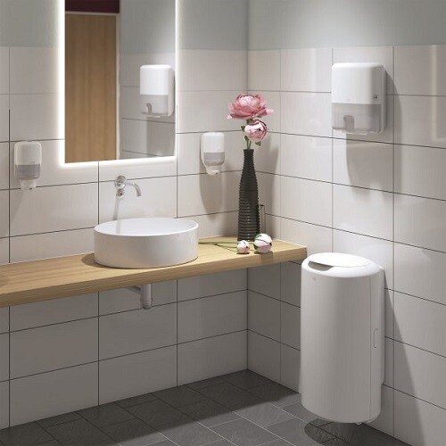 Tork Mini sæbedispenseren kan både bruges til sæbe og lotion. Dispenseren kan klare krævende omgivelser og er velegnet til toiletter, hvor der er brug for mindre kapacitet. Systemet sikrer hurtig og nem genopfyldning. Mål: H 206 x B 112 x D 114 mm.