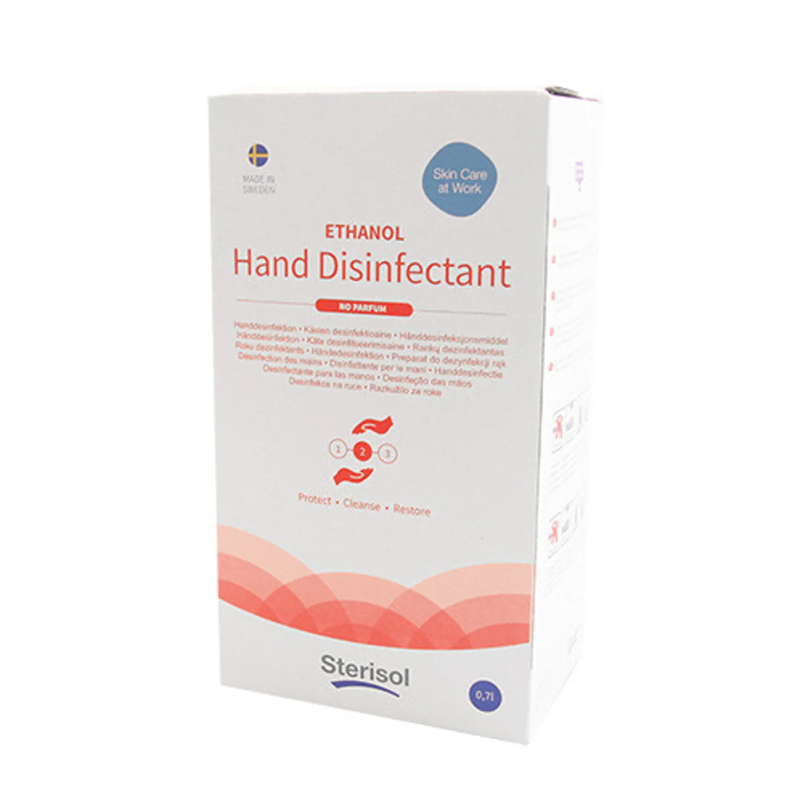 Sterisol hånddesinfektion med 85% ethanol. Gele med glycerin som virker effektivt mod svampe, virus og mange andre bakterier. Indeholder hverken parfume eller konserveringsmiddel. Egnet til brug i sundhedssektoren, på institutioner, i fødevareindustrien og andre steder hvor der kræves høj hygiejne. 700 ml. til refill.