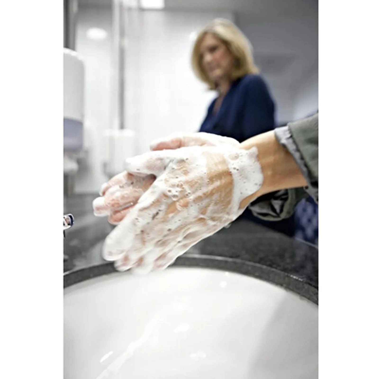 Torks milde skumsæbe plejer alle hudtyper, har en frisk duft og indeholder både fugtende og genopbyggende ingredienser. Sæben giver en blød og cremet skum til skånsom håndvask og efterlader huden blød. Egnet til Tork skumsæbe dispensere, hvilket giver hurtig og nem genopfyldning. Certificeret med EU miljømærket. Indeholder: 1 liter. Pakning: 6 styk per karton.