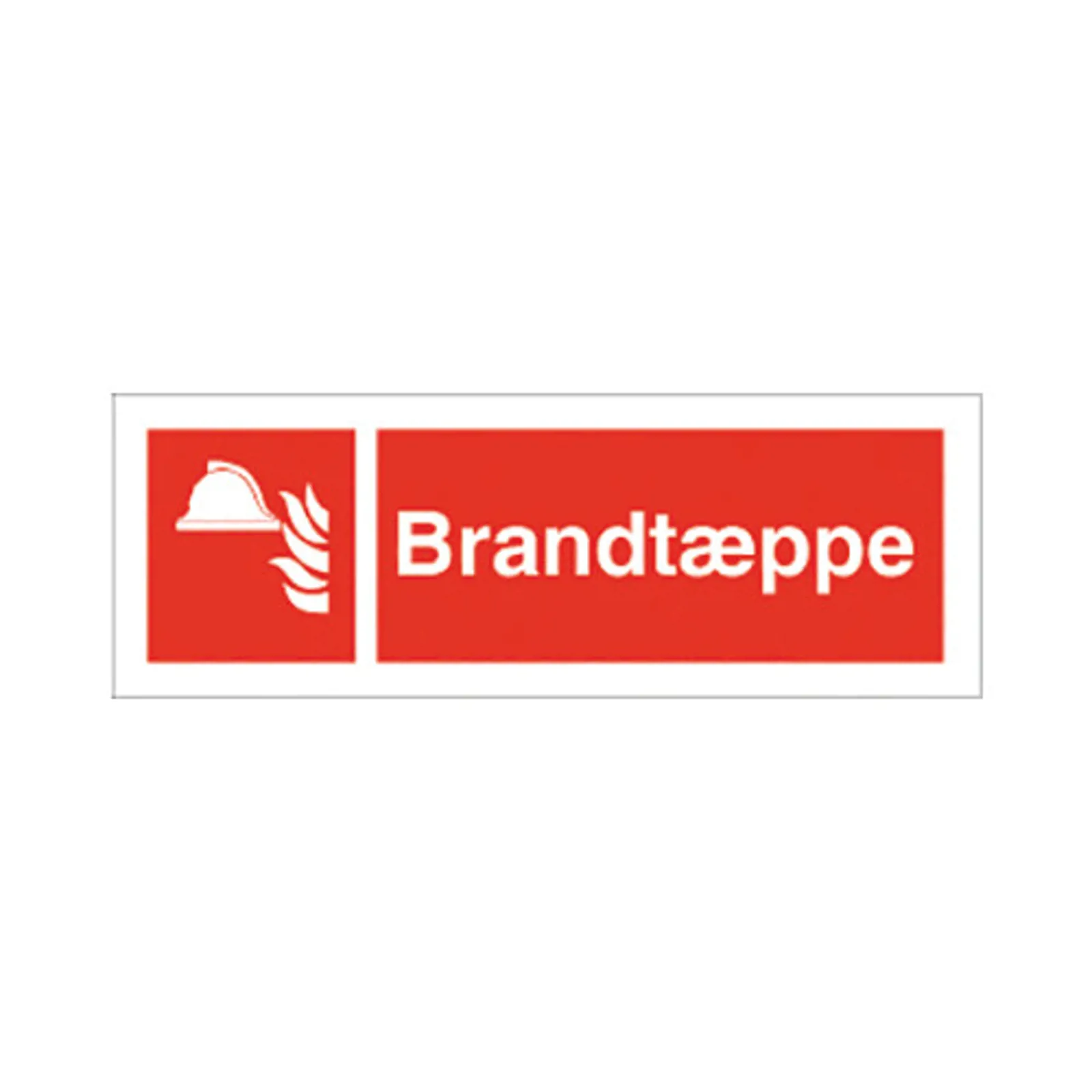 Brandskilt med dansk tekst 'Brandtæppe' leveres på Reflekterende aluminium i størrelsen (½A3) 140 x 420 mm med Symbol og tekst som følger DS/EN ISO 7010:2011 (Sikkerhedsskilte)