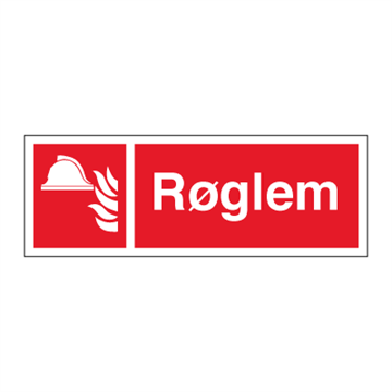 Brandskilt med dansk tekst 'Røglem ' leveres på Plast i størrelsen (½A3) 140 x 420 mm med Symbol og tekst som følger DS/EN ISO 7010:2011 (Sikkerhedsskilte)