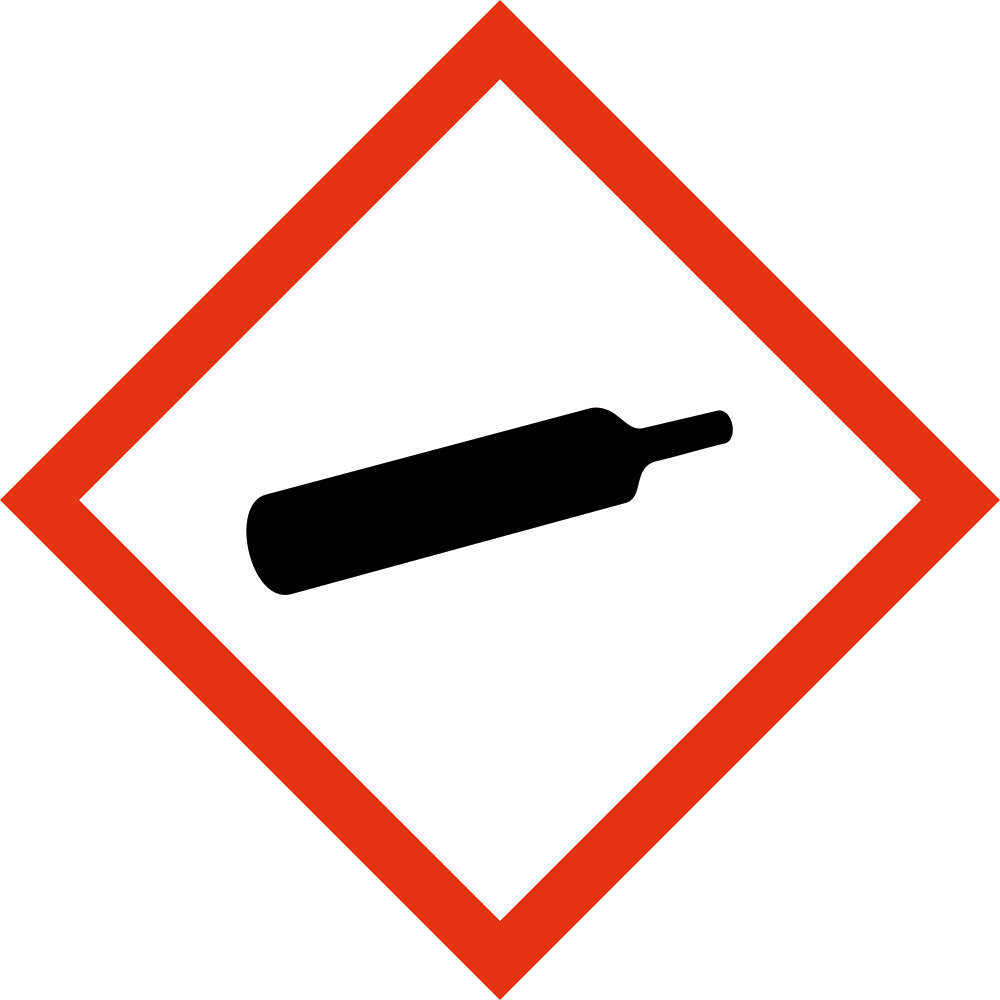 GHS skilt med symbol for 'Trykflasker ' leveres på Selvklæbende vinyl i størrelsen 15 x 15 mm Rulle á 250 stk. med Symbol som følger GHS (Rev.7) (2017)