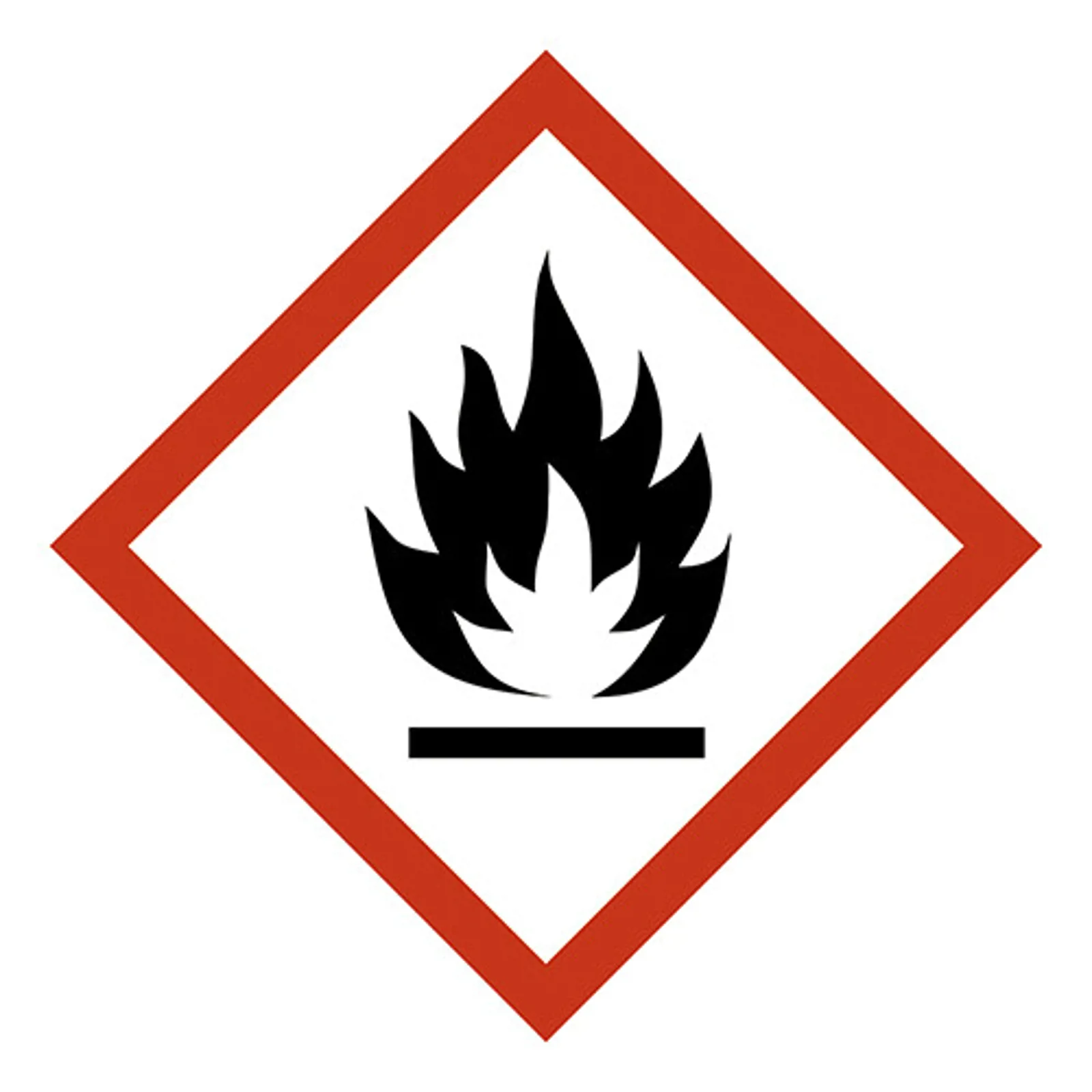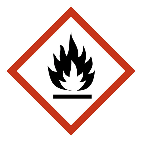 GHS skilt med symbol for "Yderst brandfarlig" leveres på selvklæbende vinyl i størrelsen 7,5 x 7,5 mm. Ark á 50 stk.