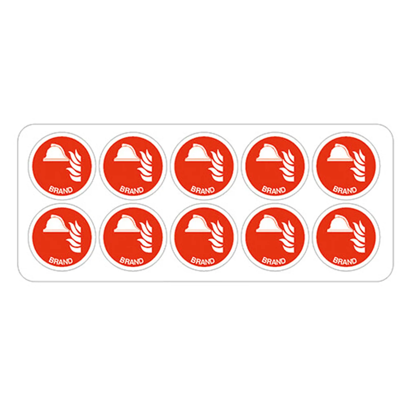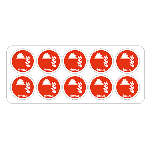 Hjelmmærke med symbol 'Brand' leveres på selvklæbende vinyl Ø40 mm.