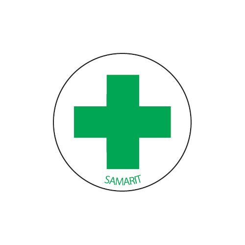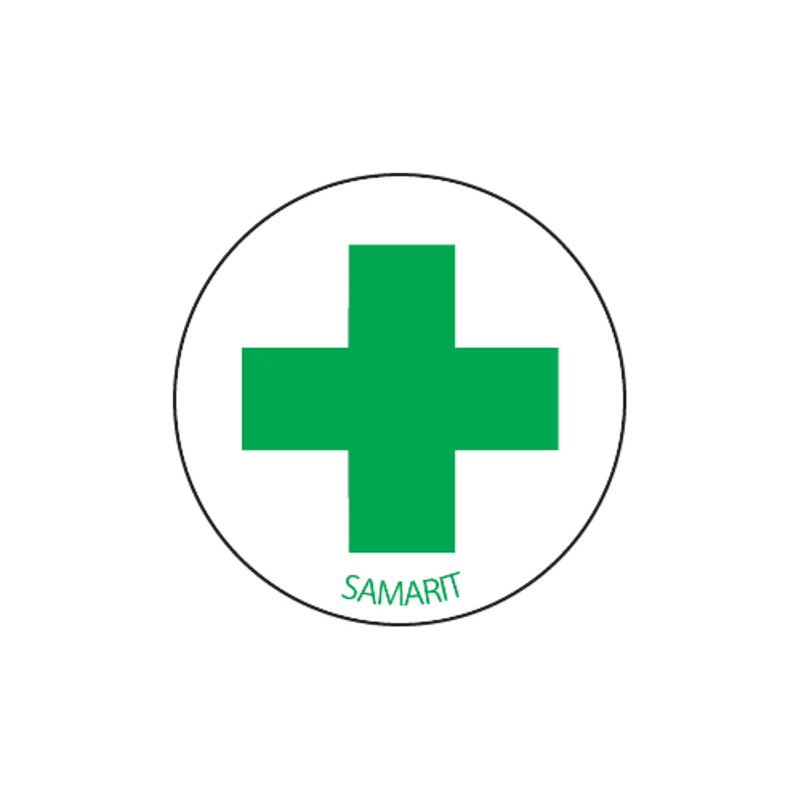 Hjelmmærke med tekst "Samarit" leveres på selvklæbende vinyl Ø40 mm.