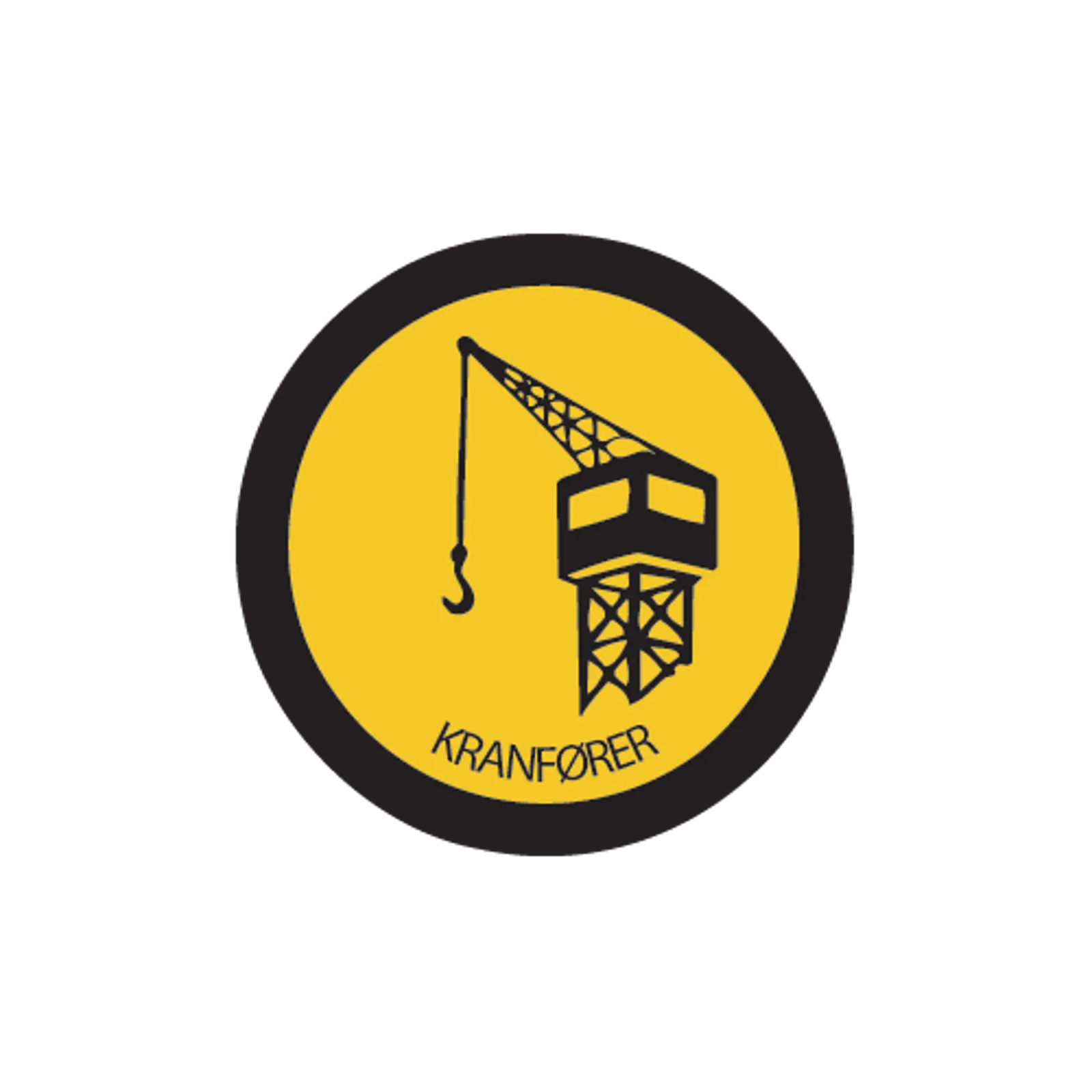 Hjelmmærke med symbol "Kranfører" leveres på selvklæbende vinyl. Mål: Ø40 mm.