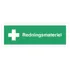 Henvisningskilt med dansk tekst 'Redningsmateriel ' leveres på Selvklæbende vinyl i størrelsen (½A3) 140 x 420 mm med Symbol og tekst som følger DS/EN ISO 7010:2011 (Sikkerhedsskilte)