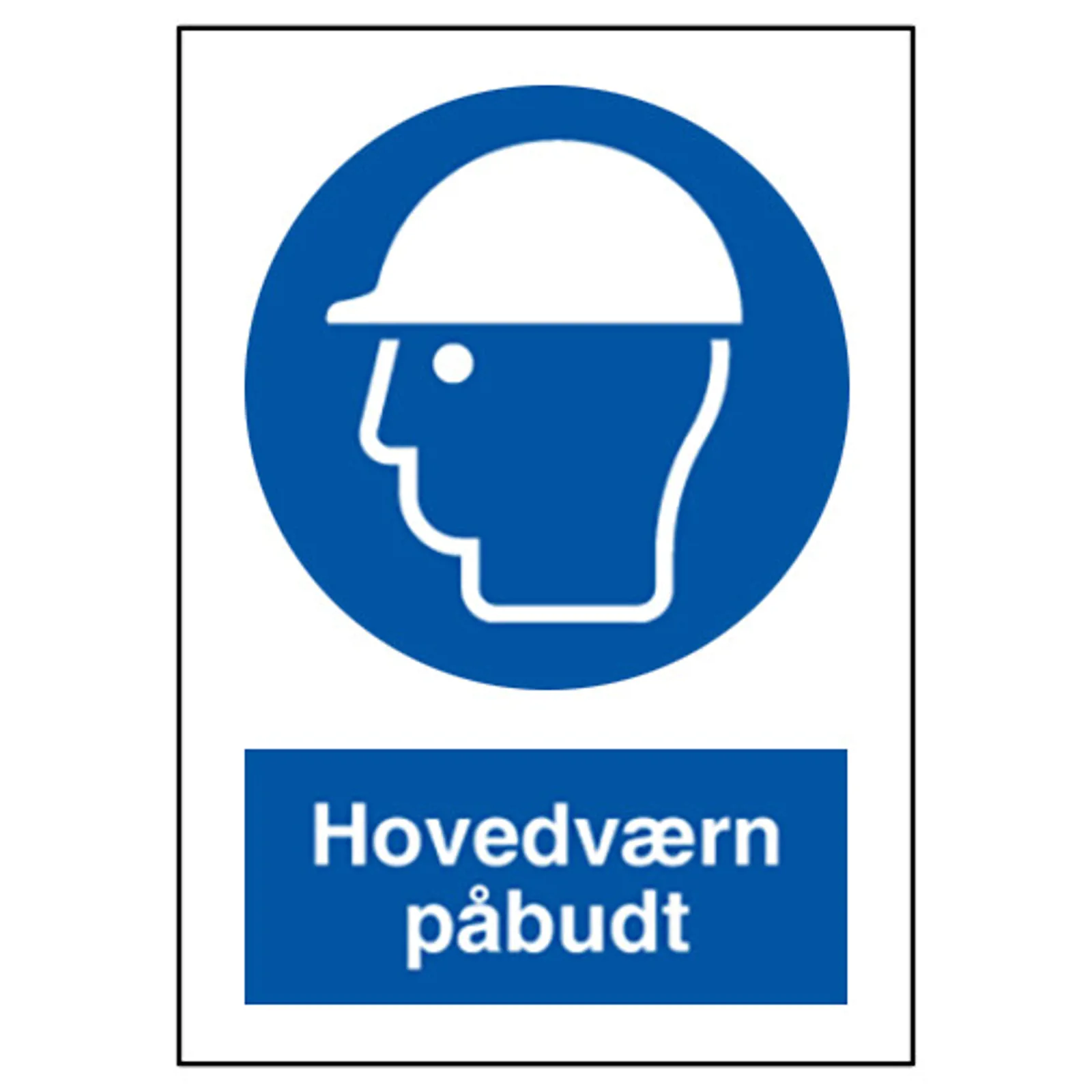 Påbudsskilt med dansk tekst "Hovedværn påbudt" leveres på plast i størrelsen (A4) 297 x 210 mm. med symbol og tekst.
