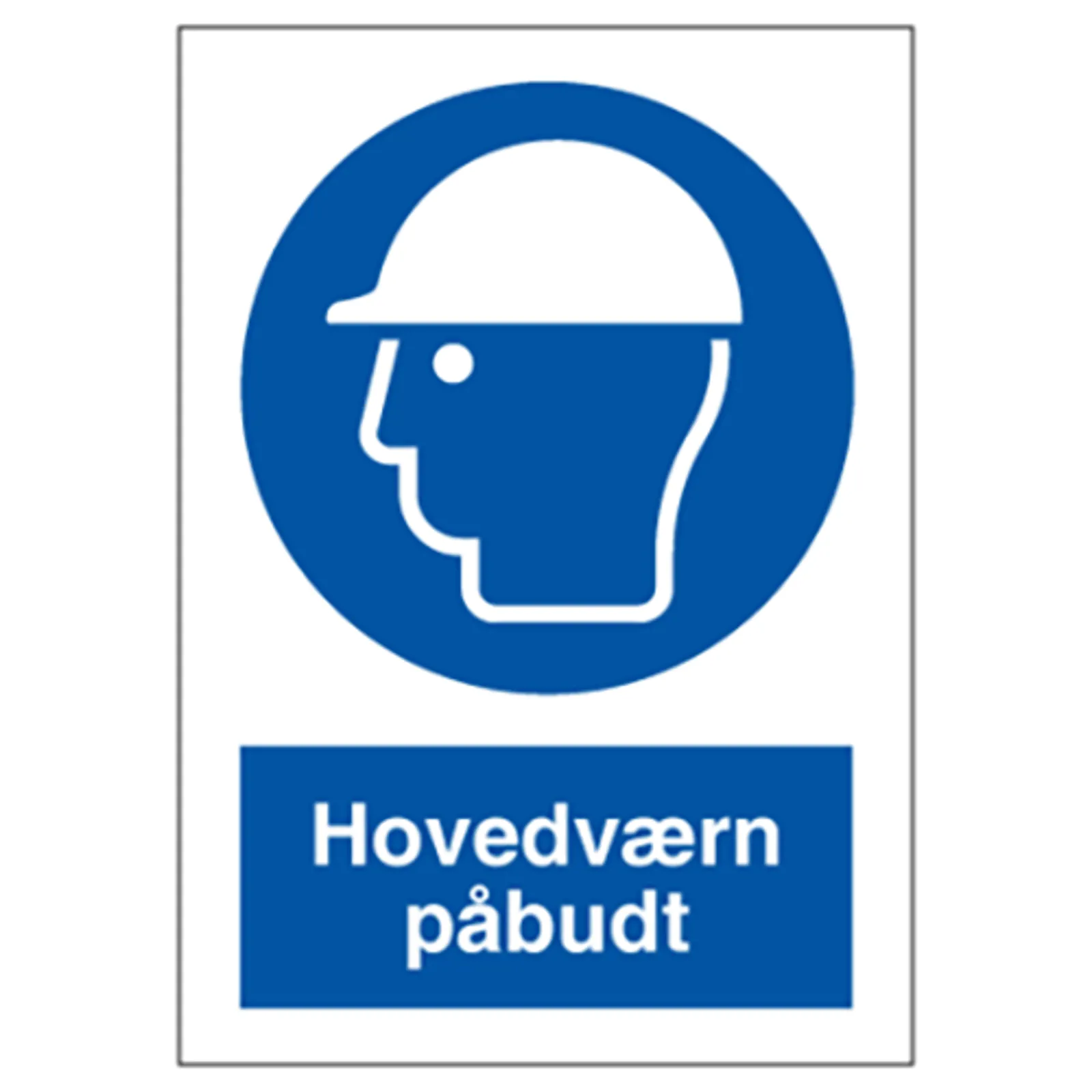 Påbudsskilt med dansk tekst "Hovedværn påbudt" leveres på plast i størrelsen (A5) 210 x 148 mm. med symbol og tekst.