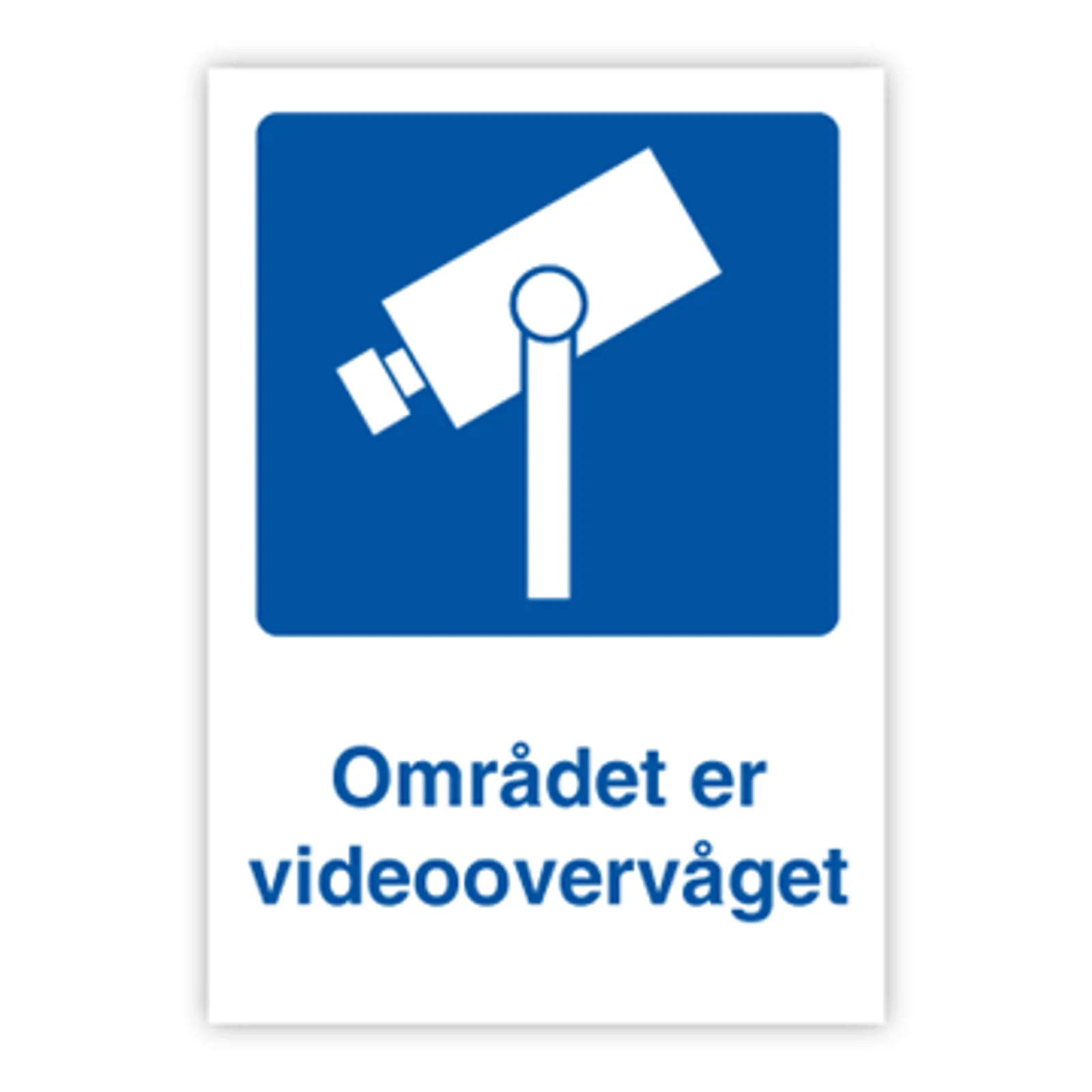 Skilt med dansk tekst "Området er videoovervåget" leveres på plastik i størrelsen (A3) 420 x 297 mm. med symbol