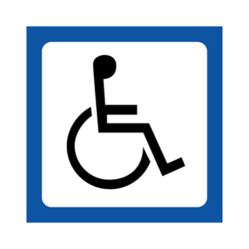 Piktogram med symbol for "Handicap" leveres på selvklæbende vinyl i størrelsen 100 x 100 mm.