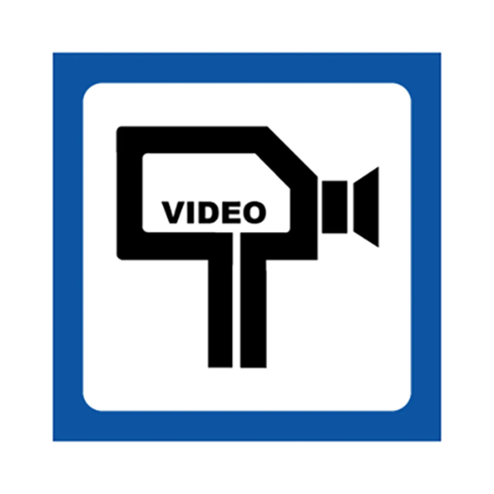 Piktogram med symbol for "Video kamera" leveres på selvklæbende vinyl i størrelsen 100 x 100 mm.