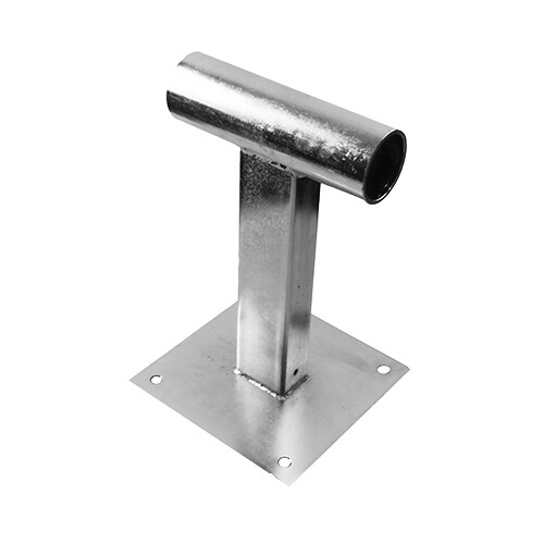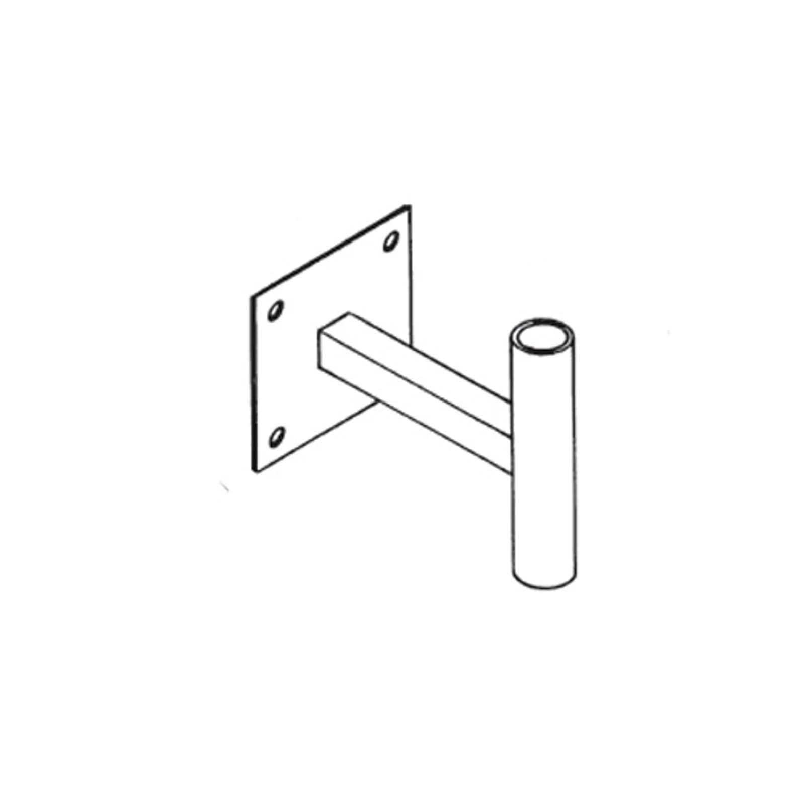 Beslag til at montere trafikspejle med rørbeslag på en væg. Model til 1 trafikspejl som når det bestilles sammen med et trafikspejl leveres i en længde på halvdelen af spejlets diameter for at sikre gode indstillingsmuligheder når den rette vinkel skal findes. Længden kan bestilles efter specielle behov hvis nødvendigt.
