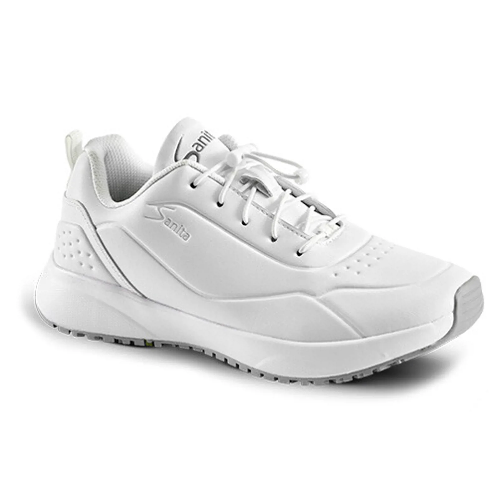 Sanita Tigau hvide jobsko i super let, smidigt og åndbart mikrofiber med svedabsorberende Coolmax® for. Mellemsål i EVA som yder høj stødabsorbering og re-bounce effekt. Ydersål af gummi for god skridsikkerhed. Unisex model.