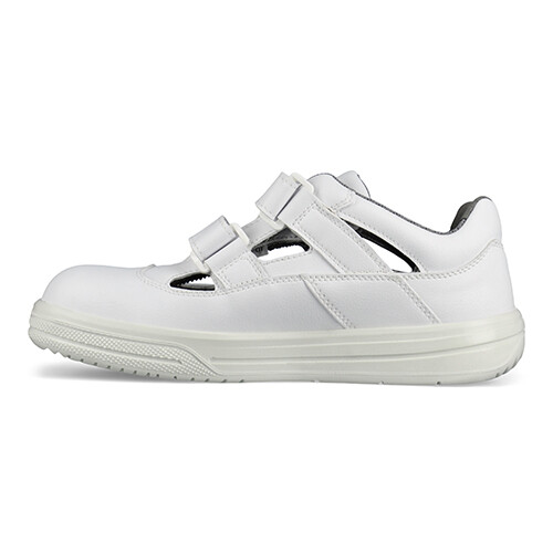 Let og behagelig sandal med dobbelt burreluk og tåkap i stål. Overdel af slidstærkt, vandafvisende microfiber. Svedabsorberende inderfor. Skridhæmmende PU ydersål med gode stødabsorberende egenskaber. Antibakteriel indersål. Læderfri. ESD-godkendt. Vægt: 0,5 kg.