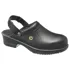 En træskoagtig klassisk og alsidig ESD-model. Overlæderet er af holdbart sort PU-læder. Vendbar rem for bedre pasform. Polyuretansålen er meget sikker og bestandig over for olie og en række kemikalier.