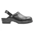 Bred ESD sikkerhedstøffel med hælrem. Dame (35-38) og herre (39-47) . Støddæmpende PU sål. Tåkappe af stål. Sort.