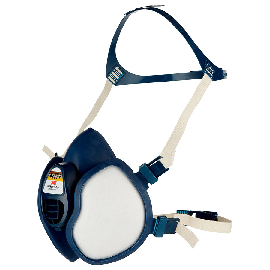 3M 4277+ genanvendelig korttids halvmaske FFABE1P3. Blød og fleksibel ansigtstætning for høj komfort og bekvemmelighed. Udstyret med nyudviklet ventil, der hjælper med at reducere åndingsmodstanden ved udånding med mere end 30%. Designet til at kunne anvendes med de fleste beskyttelsesbriller og høreværn fra 3M.
