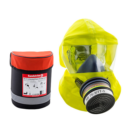 Personlig redningshætte ved flugt fra brændende områder eller kemikalieudslip, hvor ilt er til stede. Silikone halvmaske med ABEK1-CO-P3 filter kombineret med hætte af flammehæmmende materiale. Yder kortvarig beskyttelse mod kulilte, farlige røggasser, dampe og partikler som måtte blive frigivet under brand eller ved kemikalieudslip. Mere end 15 min. brugstid (filterkapacitet). Nem at tage på uden justering. Findes i to størrelser, så hætten passer alle. Leveres pakket i lufttæt alufolie med 10 års levetid uden vedligeholdelse. Vægt: 700 g.