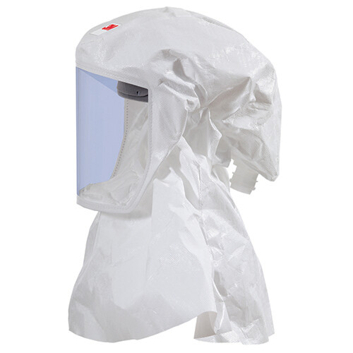 Hætte med integreret hovedbånd samt hals og skulderbeskyttelse. Fremstillet af polypropylen belagt ikke vævet polypropylen med visir af PETG. Til situationer hvor man skifter hoveddel ofte. Til kombination med Jupiter turbo, Versaflo turbo, V-500E til trykluft eller Versaflo luftvarmer til trykluft. Størrelse: Medium/Large.