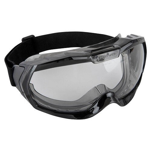Beskyttelsesbriller fra Portwest der er designet til at beskytte mod store støvpartikler, væskedråber, varme faste stoffer samt smeltet metal. Med indirekte ventilation og KN-klassificeret anti-dug og anti-ridse belægning på linserne, får du bedre beskyttelse af øjnene og fremragende udsyn. Egnet til at bære over de fleste briller med styrke. Perfekt pasform med justerbart elastisk pandebånd. 99% UV-beskyttelse.