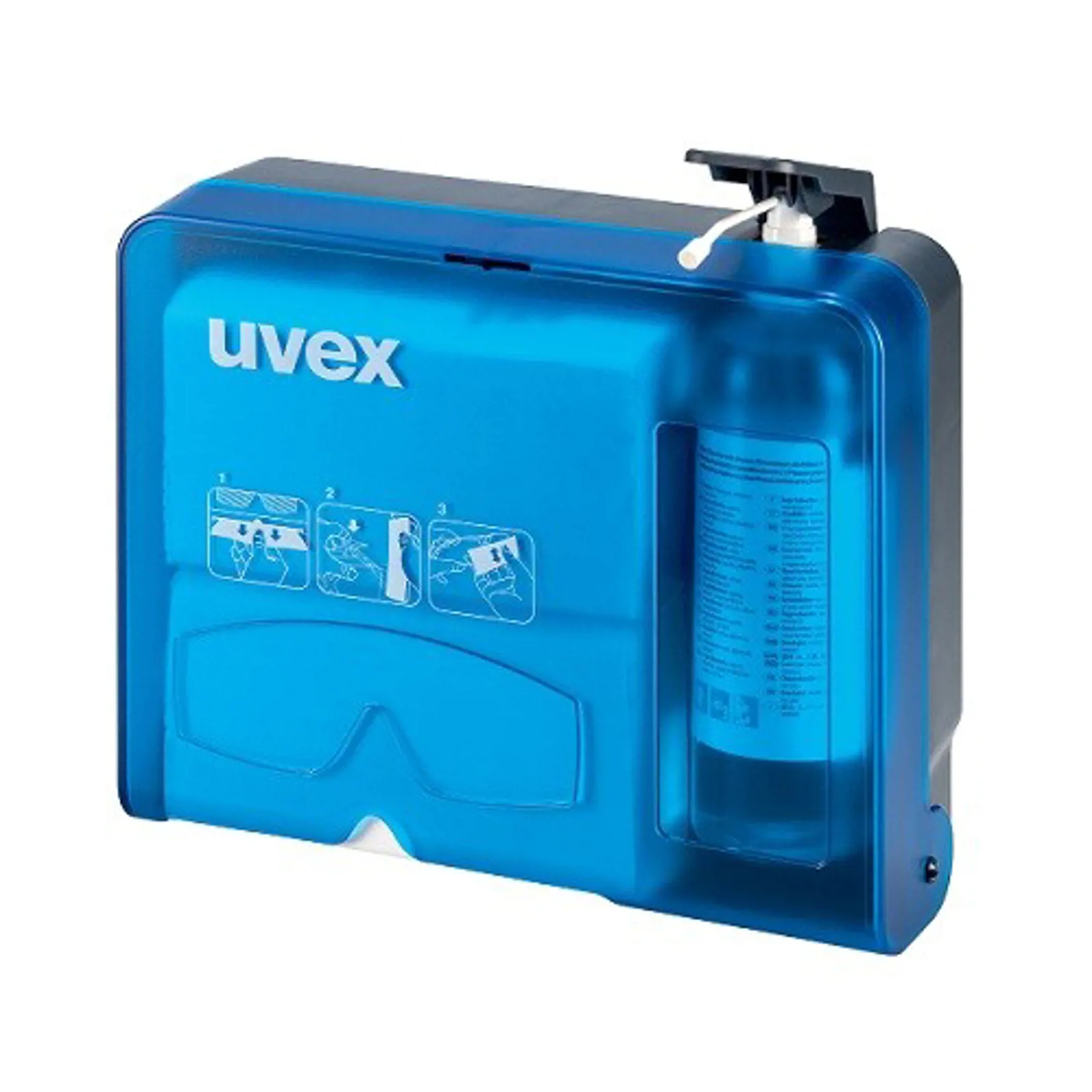 Brillerensestation fra Uvex med slankt og robust design i en kompakt størrelse (24 x 28 cm). Super let at håndtere med 1-klik-betjening og kan let monteres på en væg. Inkluderer rengøringspapir, rengøringsvæske og plastpumpe.