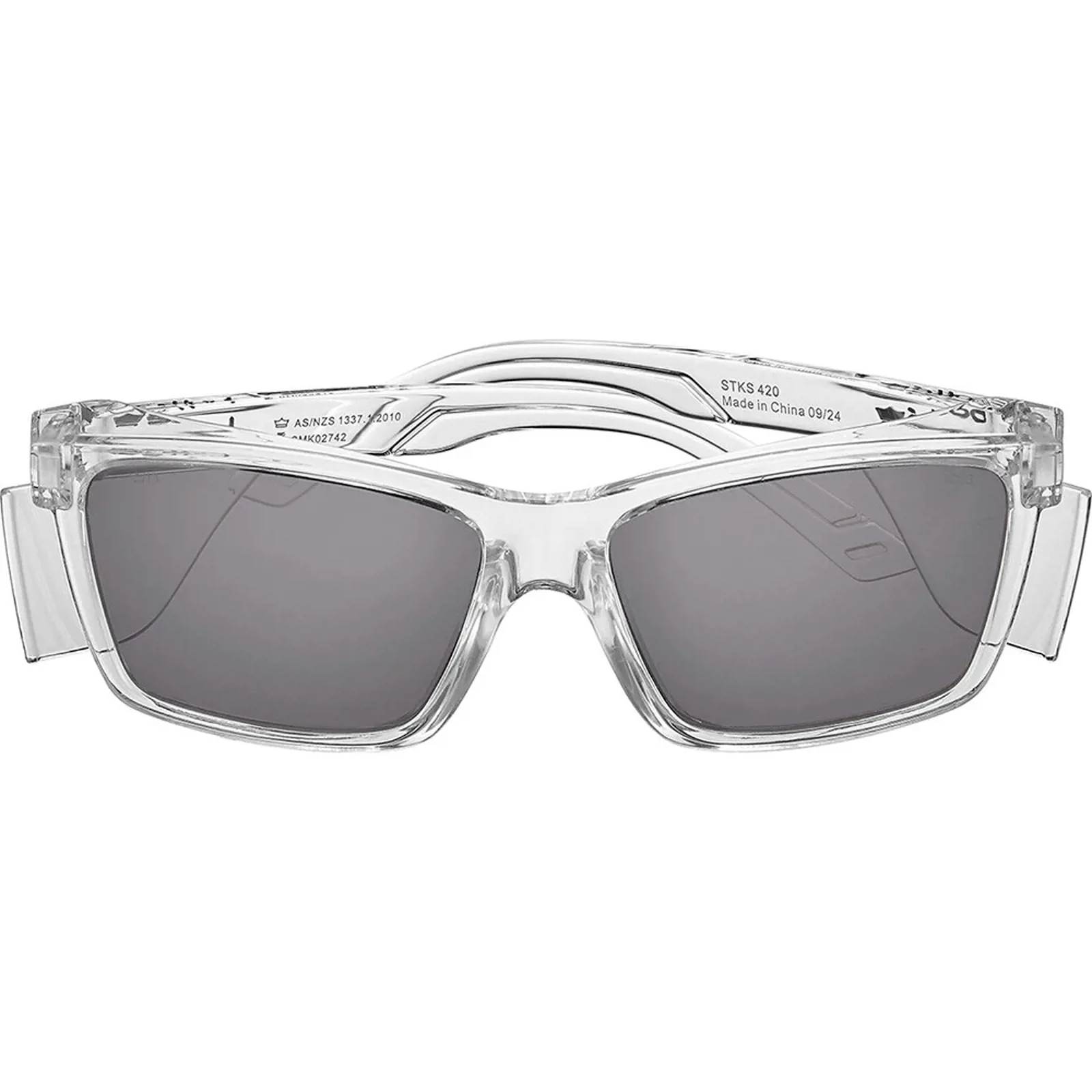 Bollé Safety STKS er en industrisikkerhedsbrille med fuld ramme i genanvendt polycarbonat og 2,2 mm polycarbonatlinser. Integrerede sideskjolde og øvre brynbeskyttelse giver udvidet dækning.