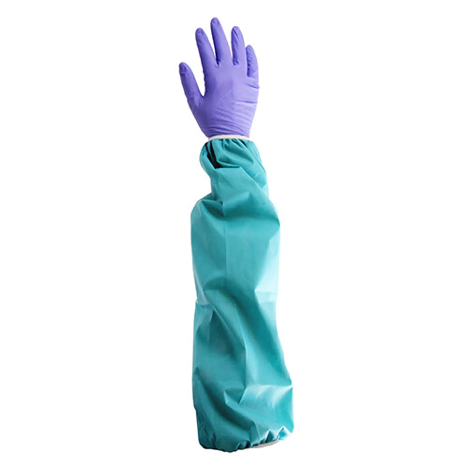 Grønt overtræksærme med elastik i begge ender. Antistatisk. Materiale: SMS.