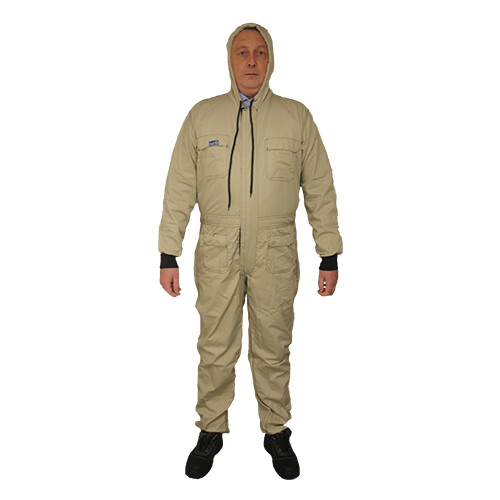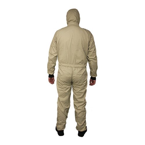 Dragt i støvtæt kvalitet med elastik ved ankler samt ribmanchet ved håndled. Dragten har hætte med snøre og 4 frontlommer med klap. Skjult lynlås i front. Bruges blandt andet til sandblæsning og lakering. Lys kaki materiale fremstillet af tætvævet polyester og bomuld. Bemærk, at dragten ikke kan anvendes som beskyttelsesdragt mod væsker og kemikalier.
