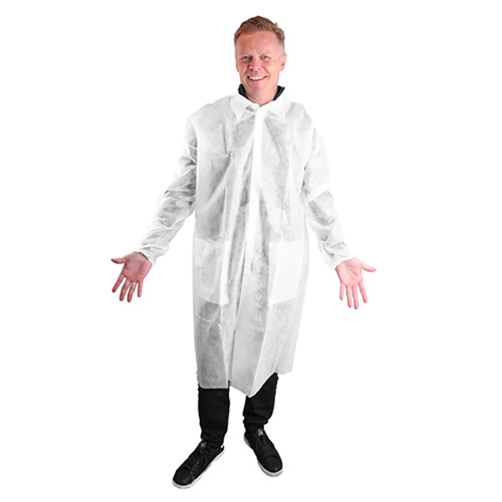 BlueStar hvid kittel med lommer i PP 40 g/m2.