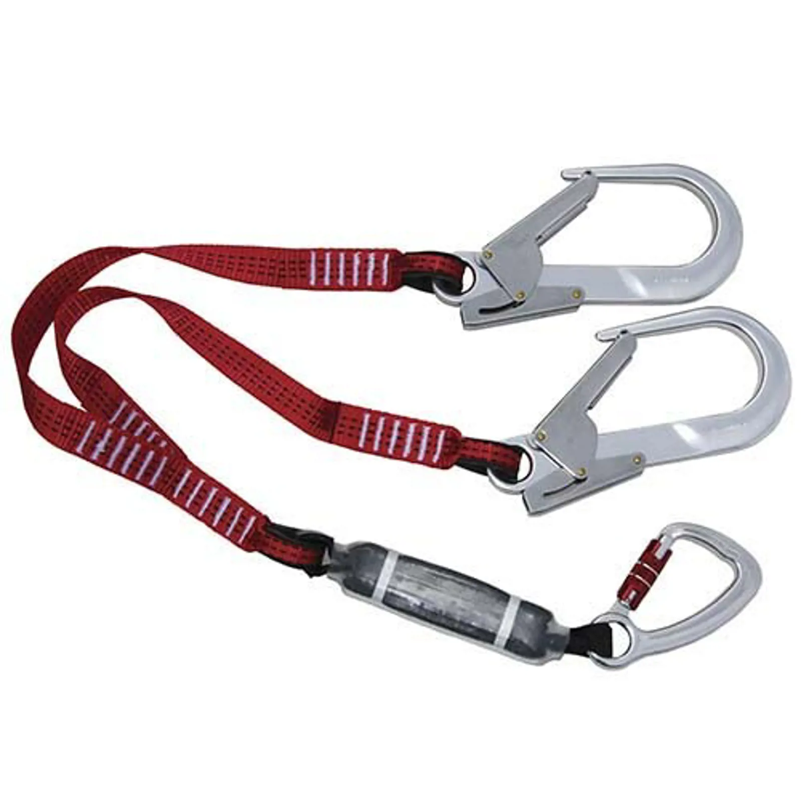 1,2 meter falddæmper med liner af polyesterbånd. Ved skiftevis at flytte én af linerne kan man sikkert bevæge sig i højden og altid være forankret. Maxikarabinhager i aluminium og åbning på 60 mm.