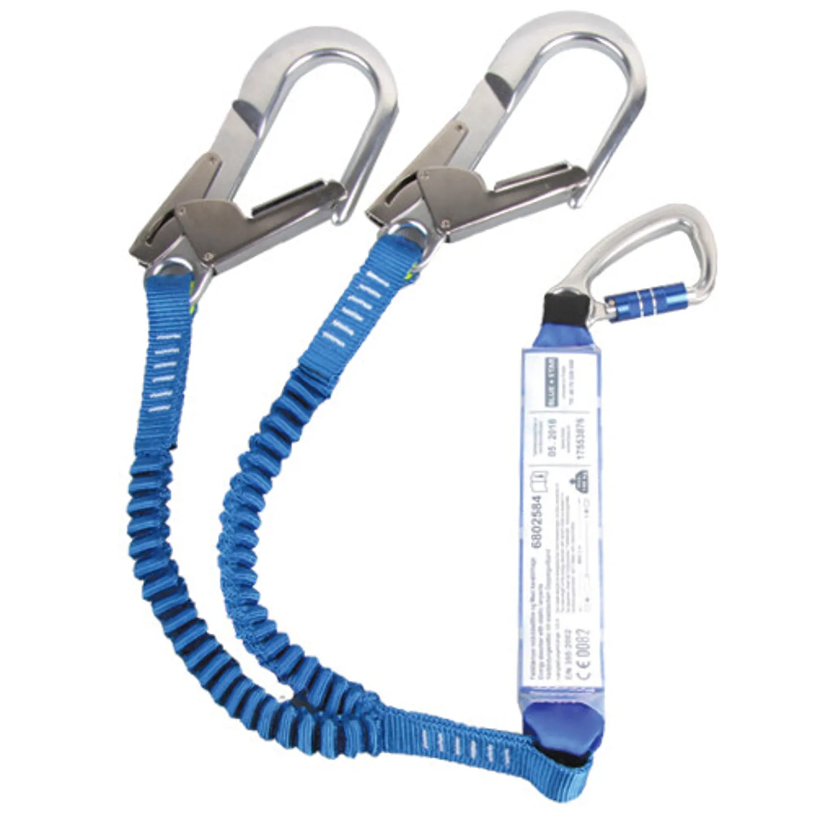 Prisattraktiv dobbelt falddæmperline! I ubelastet tilstand er linen elastisk, hvilket reducerer længden med 25%, så man ikke snubler i linen. Absorberline og elastik er indkapslet i en kappe. Forankring over brugerhøjde. Karabinhage har 18 mm åbning, maxikarabinhagerene har 60 mm åbning. Personvægt op til 137 kg. EN 355.