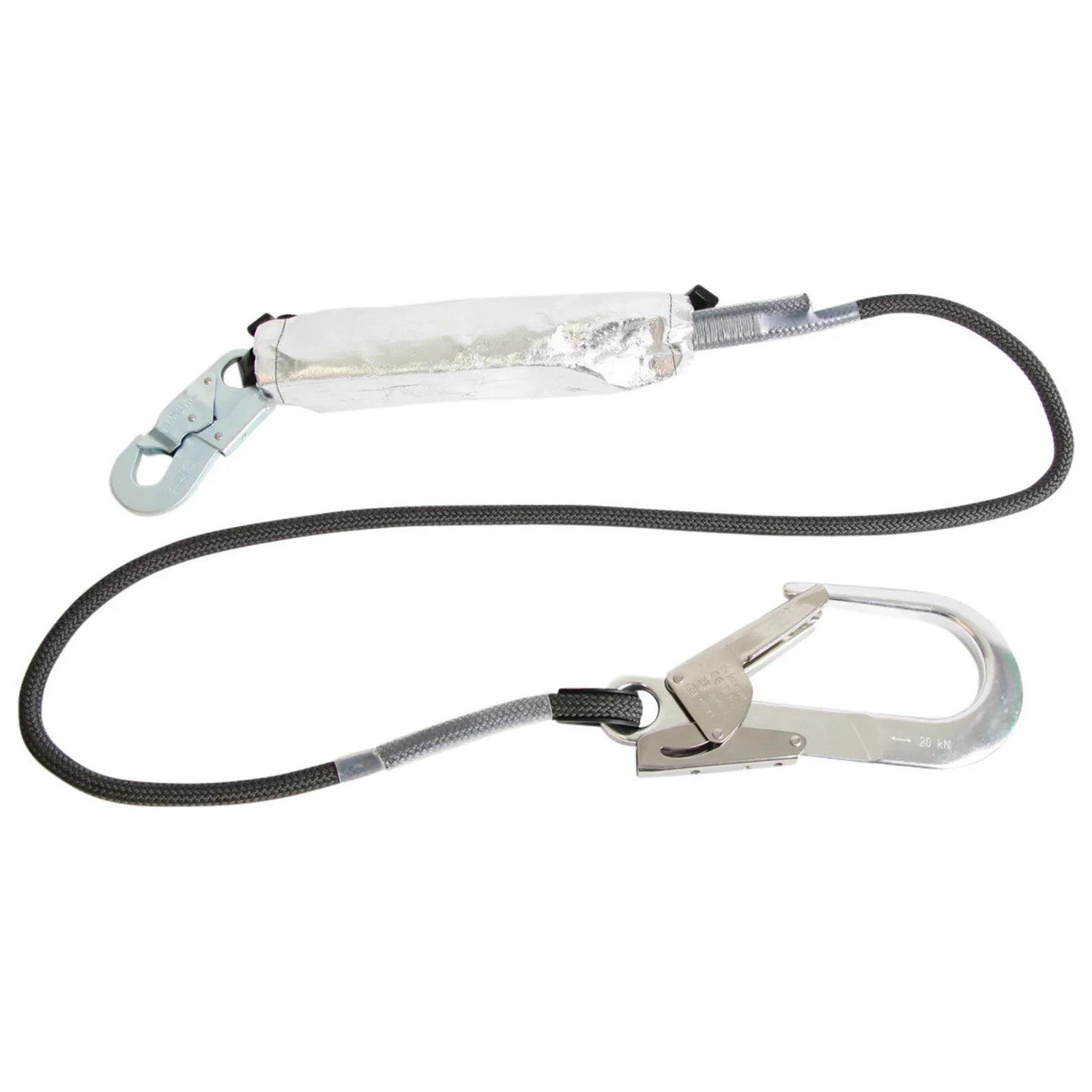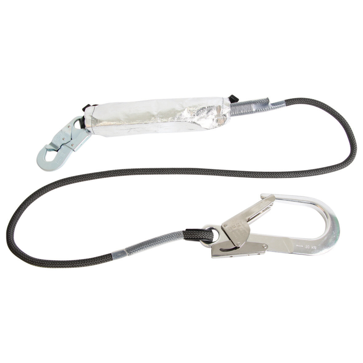 En god falddæmper med line til brandmanden og svejseren, som kan have behov for udstyr, der tåler lidt mere varme end de almindelige faldsikringsprodukter. Mål: 2 meter.