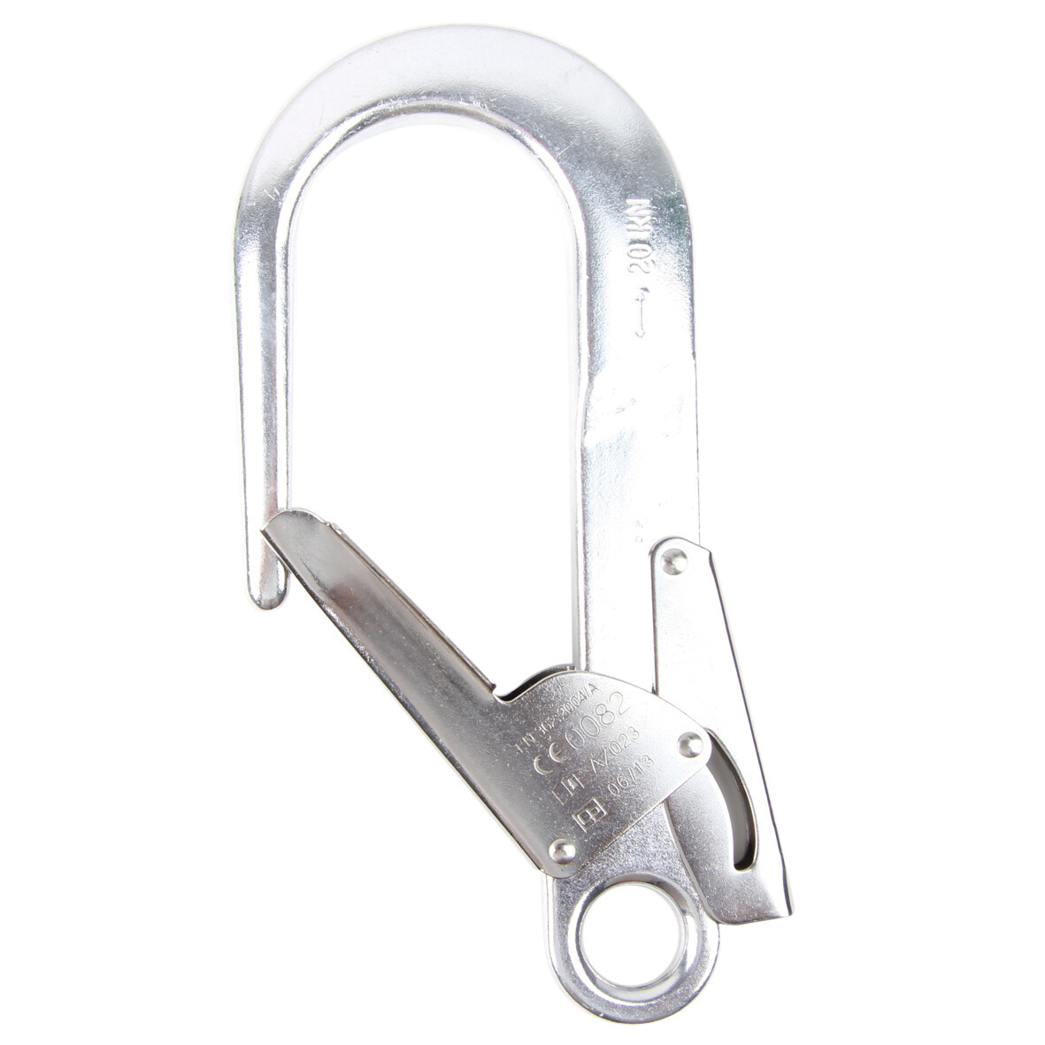 Fungerer som forbindelsesled for andet udstyr. Lås/åbning: Automatlås/60 mm. Brudstyrke på langs: 20 kN. Brudstyrke på tværs: Ikke et lovkrav. Materiale/vægt: Aluminium 460 g.