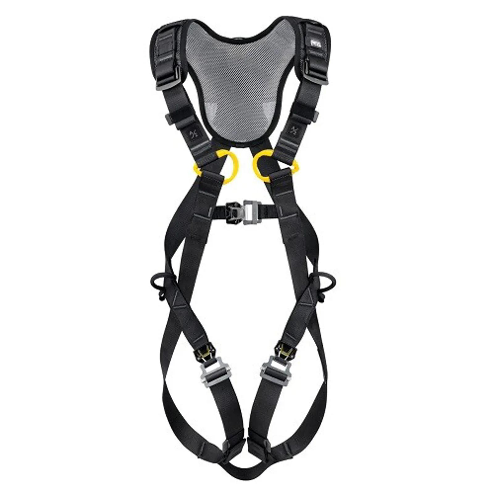 Faldsikringssele med A-punkt ved bryst og ryg. Click-spænder og ekstra padding ved skulderblade.