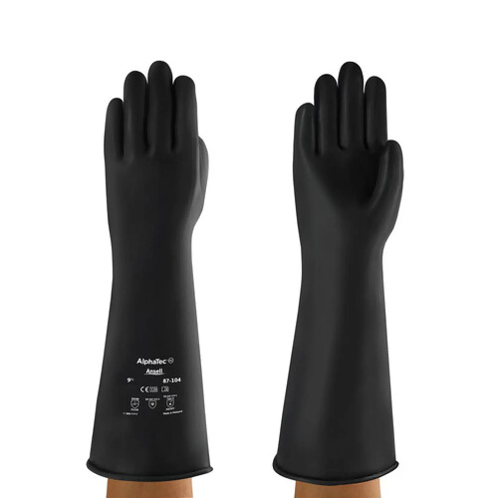 Ansell AlphaTec 87-104 giver god mekanisk og kemisk beskyttelse til svære anvendelser. Handsken har høj bestandighed overfor vandbaserede kemikalier, den har god elasticitet hvilket forhindrer rifter og så har den god fleksibilitet. Den er desuden klorineret for at rense og hærde overfladen på handsken. Særligt velegnet til brug i landbrug, bygge og anlæg, pedeltjenester, hygiejne arbejde, vedligeholdelse og kemisk arbejde. Opfylder REACH.