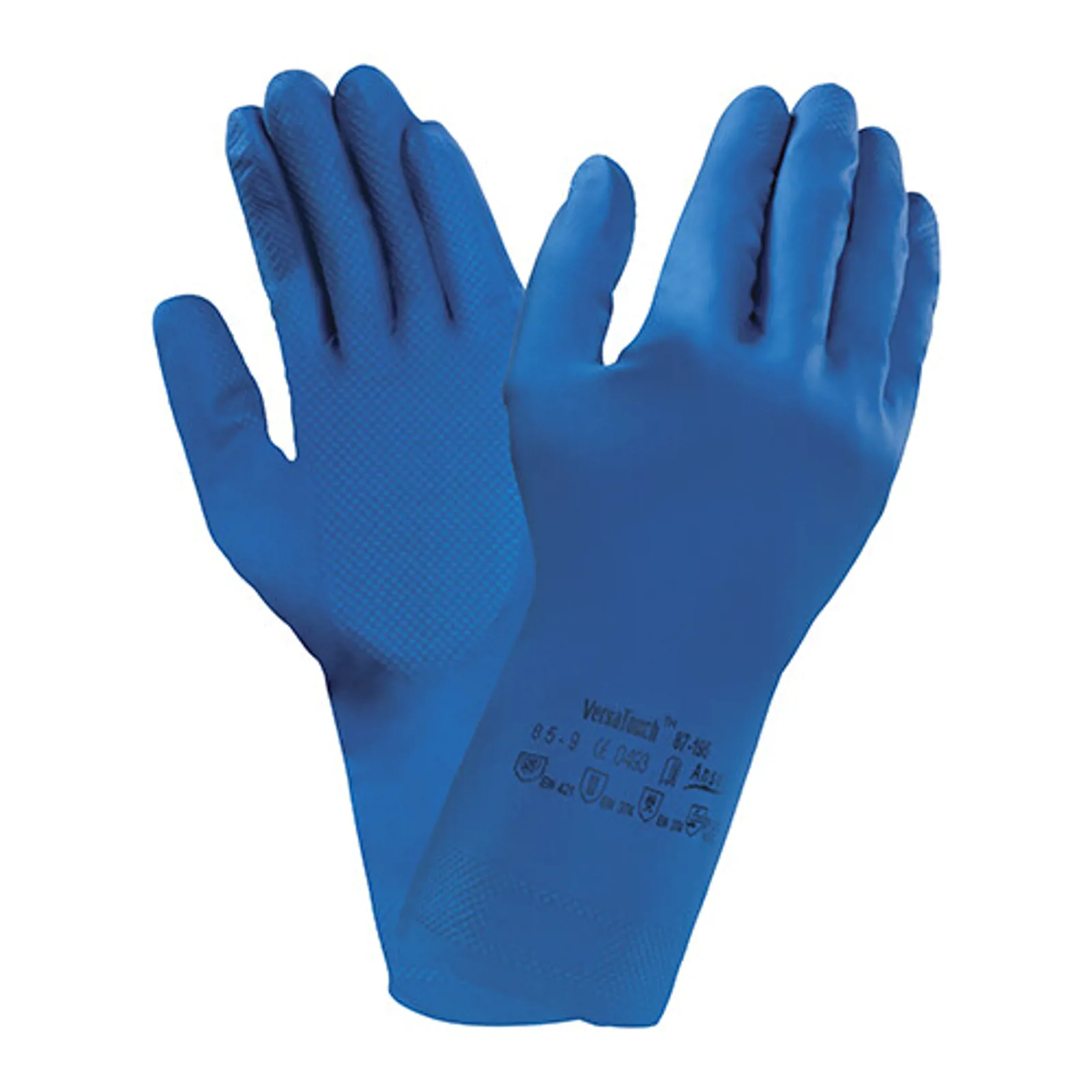 Latexhandske med bomulds-velourisering. Specialbehandlet for at reducere risikoen for allergiske reaktioner. Enestående fingerfølsomhed. Egnet til rengøringsopgaver og til forarbejdning af fødevarer. Længde: 30,5 cm. Tykkelse: 0,35 mm. AQL 1,5.