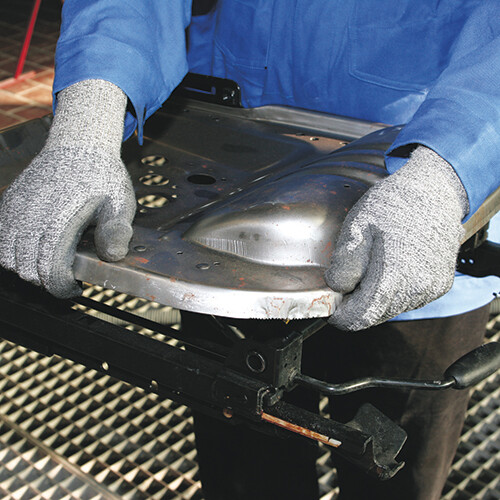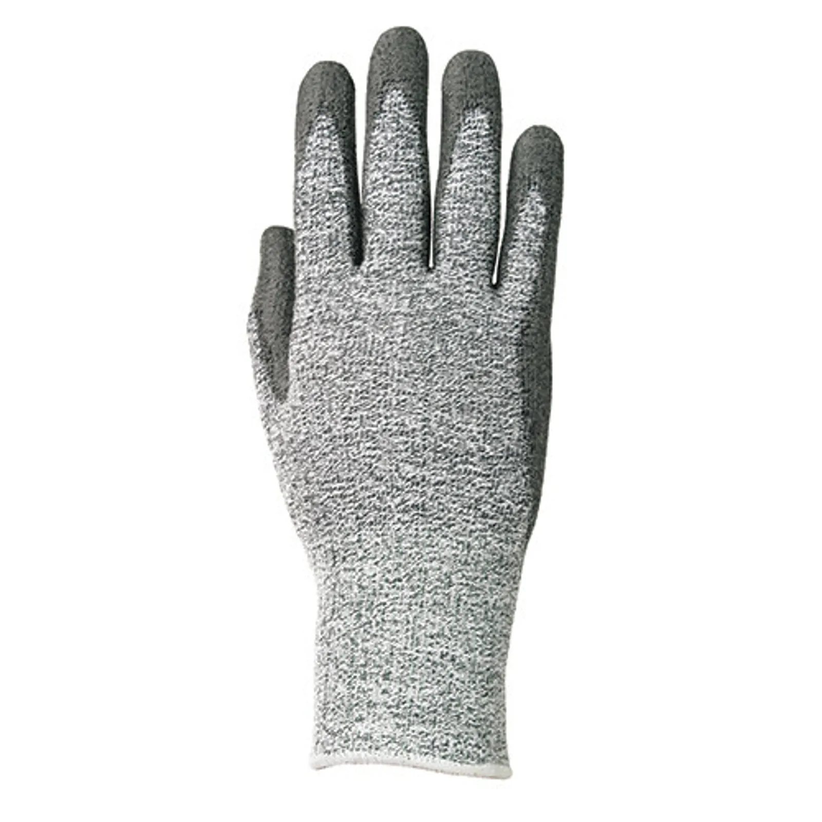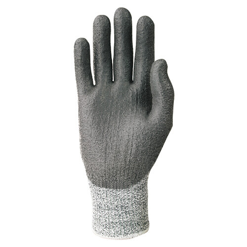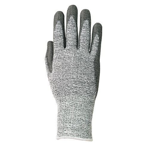 Gråmeleret, tynd Dyneema-handske med PU-belægning. Perfekt fingerføling og meget høj slidstyrke. Godt greb ved håndtering af våde og glatte emner. Dyneema sikrer god skærefasthed, niveau 3. Egnet til snavset arbejde. Længde: 24 cm.