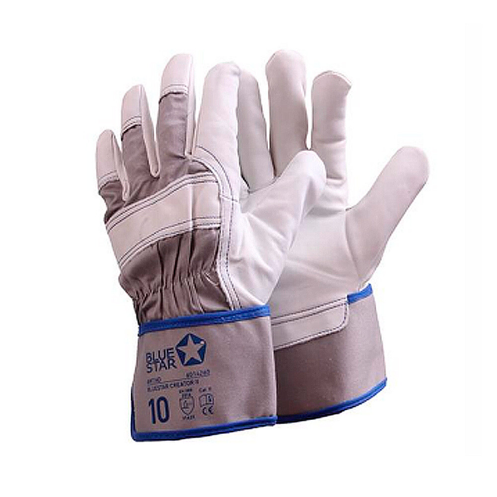 BlueStar Creator V er en lækker handske af lys oksehud. Den har har kanvasoverhånd med elastik samt gummieret manchet, som giver en god pasform og beskyttelse om hele håndleddet. Handsken er udstyret med ekstra forstærkninger ved knoer i form af dobbelte syninger. Velegnet til entreprenør- og håndværksbranchen, lettere industri samt generel håndtering af fedtede og snavsede emner.