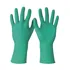 Grøn polychloropren, fri for latex proteiner og acceleratorer, men har samme gode komfort og elasticitet som latex. Ikke sterile og uden pudder. Mønstret overflade giver bedre greb. Indvendig behandling, nem at tage af og på. Den mest avancerede handskeløsning til forebyggelse af allergi. Længde: 31 cm. Tykkelse: 0,175 mm, AQL 0,065 målt ved lufttryk.
