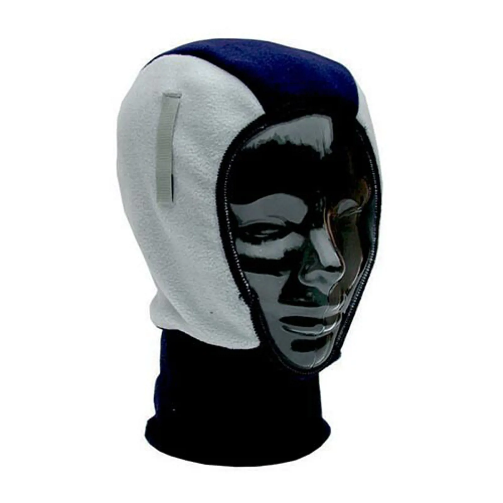 Heldækkende hue af blødt og kraftigt fleece (60% polyester, 35% akryl, 5% elastane med strikket halsedisse). Med burreluktil montering omkring hovedbåndet på hjelmen. Slutter tæt omkring ansigtet.