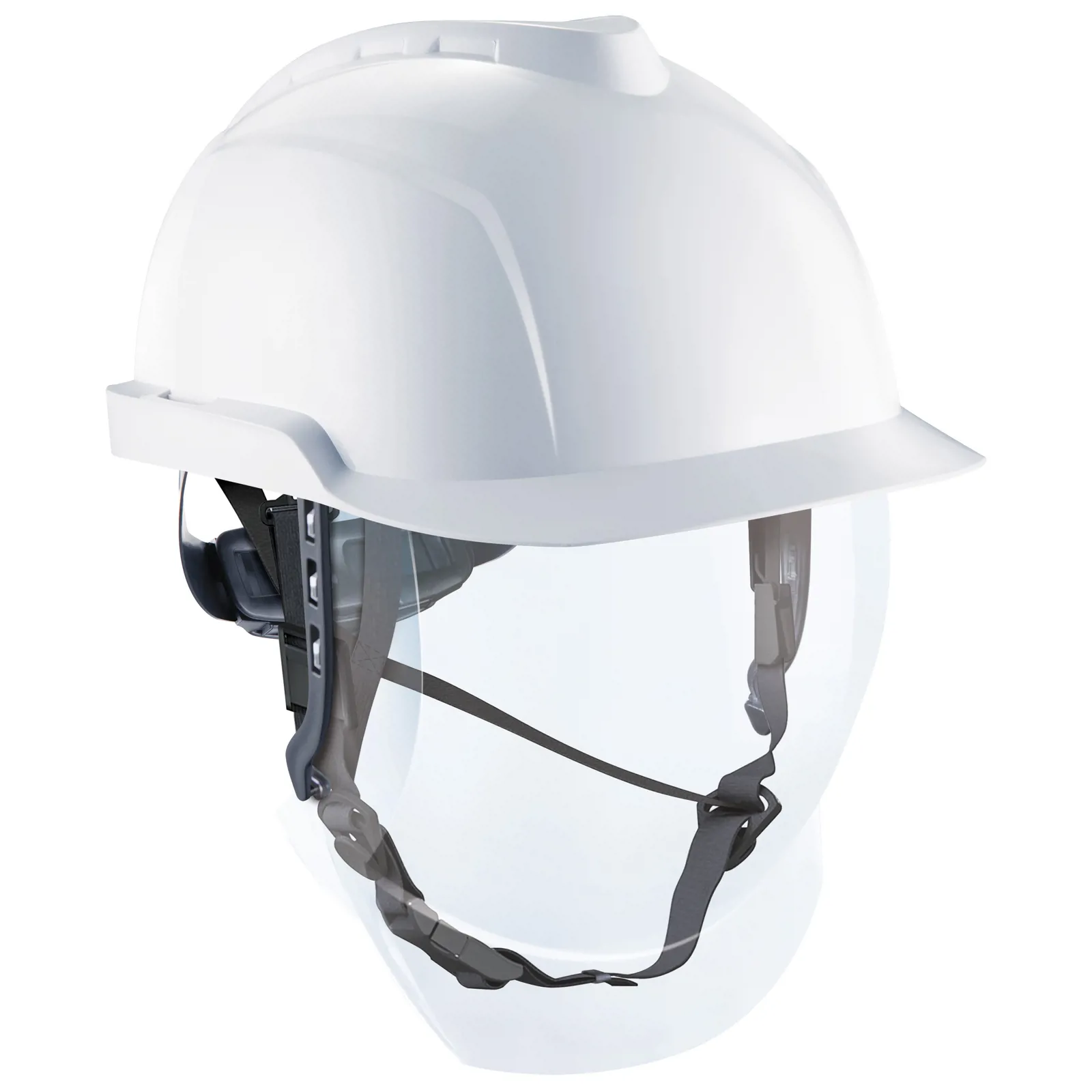 MSA V-Gard 950 sikkerhedshjelm med visir er en ikke-ventileret industrihjelm beregnet til elektrikere. Hjelmen er udstyret med et 6-punkts Fas-Trac-drejespænde og en 4-punkts-hagerem, som gør det nemt at opnå den rette pasform. GS-ET-29 klasse 1 (4kA) ansigtsvisiret er med antirids- og antidug-belægning og kan tages op eller ned samt anvendes over sikkerhedsbriller. Visiret beskytter mod lysbuer, kemikaliesprøjt, smeltet metal og UV-stråling. Arbejdshjelmen er fremstillet af stærkt ABS-plast og er letvægtig. Den har et moderne design med et sporty udtryk og kan desuden benyttes med høreværn. Med aftageligt og vaskbart svedbånd for øget hygiejne.