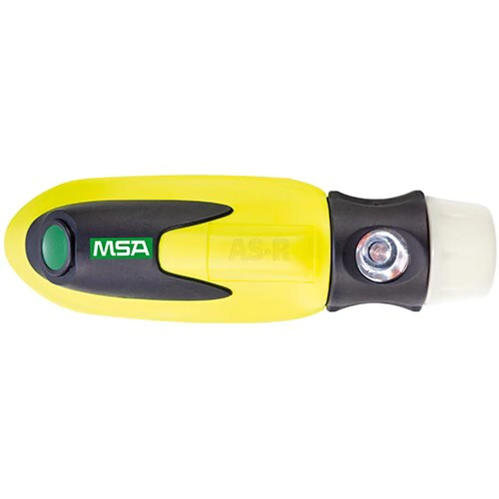 AS-R lygten fra MSA er en hi-viz gulLED lygte med mellem til lang rækkevidde. Den er velegnet til områder med tyk røg og er designet med et rødt LED lys, som angiver brugerens position. Lygten er let og kan monteres nederst på en hjelm for en ergonomisk placering. Det gør det desuden muligt for brugeren at arbejde med hænderne frie og få belyst objekterne med det samme. Vinklen på lygten kan justeres. Fås med genopladeligt Li-Ion batteri. Vægt med batteri 180 g. Længde 156 mm. ATEX godkendt.