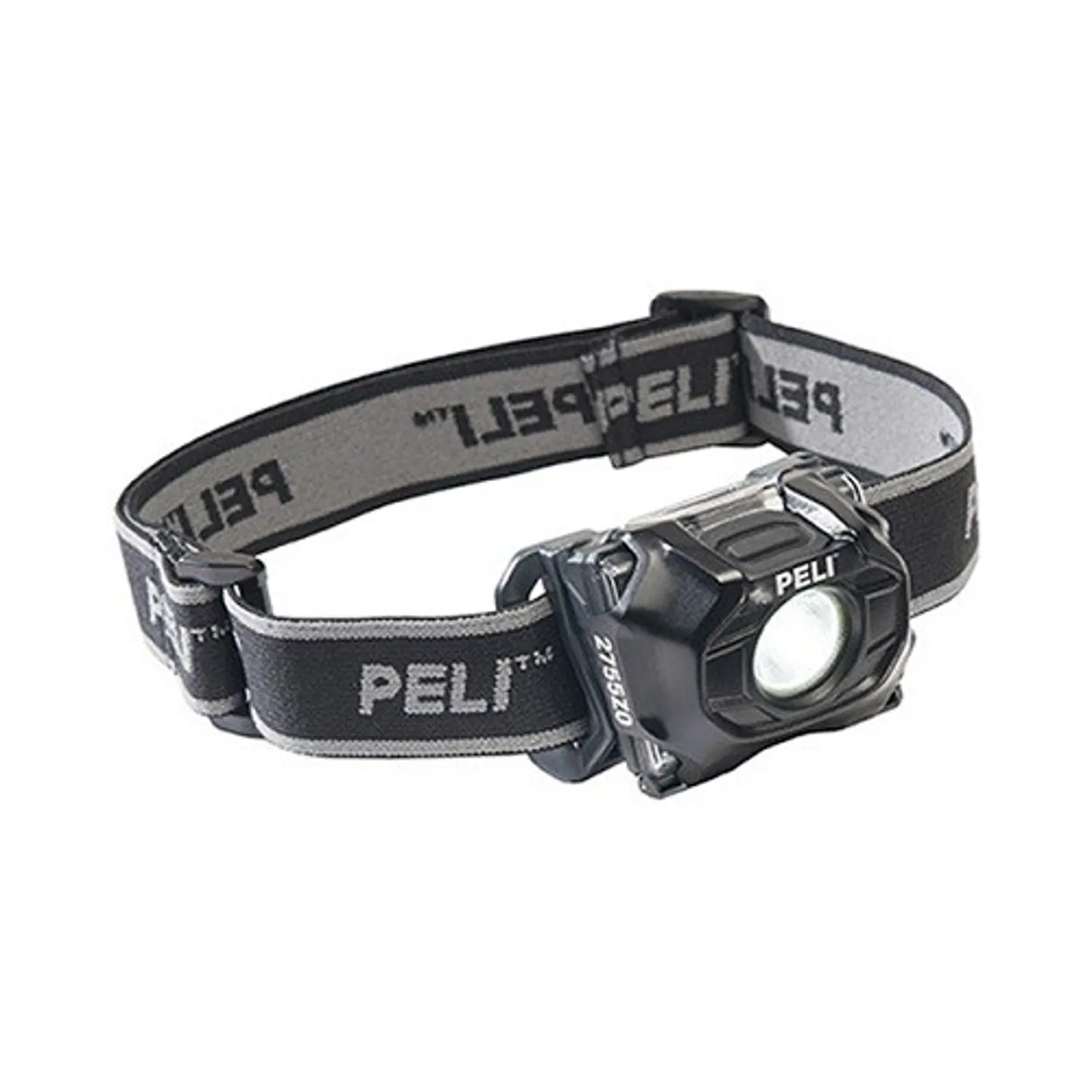 Denne sorte pandelampe fra Peli er både slagfast og stænktæt, samtidigt med at den kan lyse op til 57 meter. Lampen har to lysstyrker, som giver henholdsvis 115 lumens i 6 timer eller 58 lumens i 15 timer. Den vejer blot 60 gram og drives af 3 AAA batterier (Alkaline). Batterierne følger med. Lygtehovedet kan vippes, så man kan rette lyset lige nøjagtig derhen hvor man har behov for det. Pandelampen er EX / ATEX godkendt til zone 1, hvilket betyder at lampen er ideel til professionelt brug i områder med eksplosionsfare, arbejde med kemikalier osv. I forbindelse med den nye ATEX-lovgivning er pandelampem blevet udstyret med en antistatisk hovedrem. Der medfølger en justerbar elastikrem for hovedbrug.